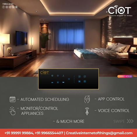 Best Smart Home Automation Company In Telangana | CiotCIOT – Creative Internet of Things provides IoT-based smart switchboards, lighting automation, appliance control, voice assistant features, and complete smart home solutions across Hyderabad and major cities in Telangana and Andhra Pradesh. Control your home from anywhere with modern comfort, safety, and energy efficiency. For enquiries, call 99991 99884 or 99665 54407 or visit our website www.ciot.cc . Follow @ciot.official for more smart living updates.
