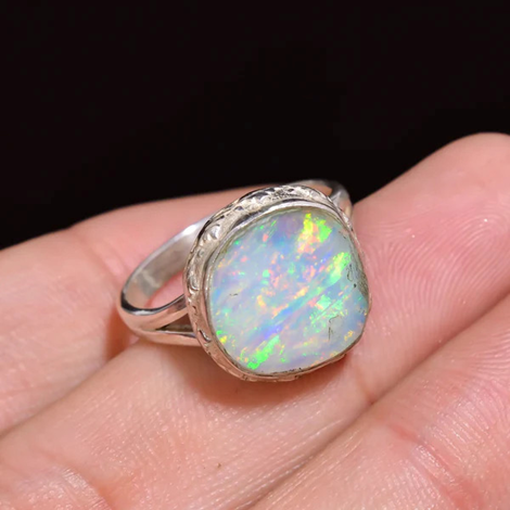 Healing Energy Ring For Women – White Oval Ethiopian OpalExperience the powerful energy of this Natural White Ethiopian Opal Ring, beautifully handcrafted in 925 Sterling Silver. This 12×12 mm round Ethiopian Opal gemstone is known for its fire-play colors, emotional healing energy, and spiritual awakening properties. Perfect for those who love astrology gemstones, healing crystals, and handmade ethnic jewelry, this ring is designed to enhance intuition, calm the mind, and attract positivity. Whether you wear it as a healing stone, spiritual accessory, or a statement ring, this piece adds both elegance and meaning to your collection.