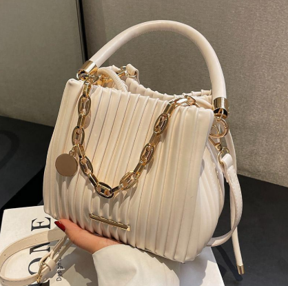 Elevate Your Summer Style With This Women's White Pleated Bucket Bag.This elegant crossbody shoulder handbag features beautiful pleated detailing, golden-tone hardware, and a chic braided handle that creates a sophisticated, versatile look perfect for warm weather. The crisp white color and refined design make this bag a timeless addition to any wardrobe. #LuxeCarry #ChicAccessories #BagGoals #PurseAddict #StyleInYourHands #miraefashionstore