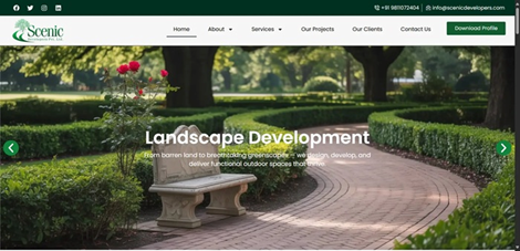 Residential Landscaping & Maintanence Services - Scenic DevelopersScenic Developers offers premium, comprehensive residential landscaping services. Transform your property into a beautiful, functional, and sustainable outdoor space. Residential Landscaping Services: From custom garden design and initial installation (softscaping and hardscaping) to creating stunning curb appeal for new and existing homes. We specialize in bespoke patios, walkways, water features, and planting schemes that reflect your personal style and enhance property value. Residential Landscape Maintenance: Keep your home's exterior impeccable year-round with our professional, scheduled care plans. Services cover everything from expert lawn mowing, trimming, and pruning to seasonal clean-ups, fertilization, and irrigation management. We ensure your greenery is vibrant and healthy, allowing you to relax and enjoy your beautiful yard without the work. Commercial Landscaping: We design, install, and maintain high-impact outdoor areas for businesses, HOAs, and corporate parks. Our services ensure a professional, welcoming look that attracts clients and elevates your company's image. Why Choose Scenic Developers? We are fully insured, reliable, and committed to sustainable, high-quality workmanship. Competitive rates and free, no-obligation consultations are available for all projects, big or small. Call Scenic Developers today to discuss your next outdoor project! Phone: +91 9811072404