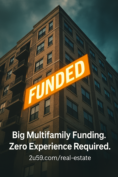 Big Multifamily Funding. Zero Experience Required.Whether you’re just starting out or scaling up, we back bold moves. Found a 30+ unit multifamily deal? We’ll fund it—no fluff, no friction. ? Full funding ? Built for all experience levels You find it. We fund it.