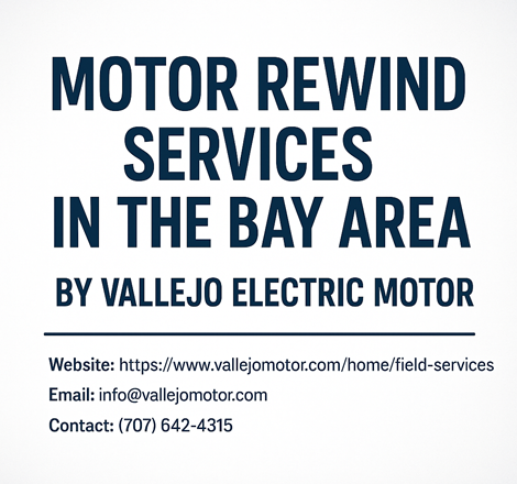 Motor Rewind Services In Bay Area - Vallejo Electric MotorVallejo Motor offers professional motor rewind services in the Bay Area and nearby locations, providing expert on-site electric motor repair and field services across California. From precision rewinds and testing to alignment and 24/7 outage support, we ensure maximum reliability, efficiency, and minimal downtime.