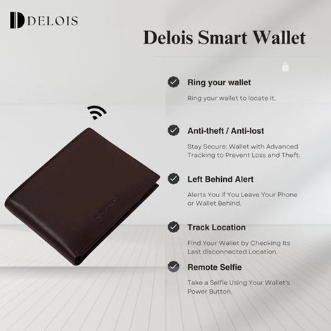Dark Brown Trackable Smart WalletSmart Wallet Collection: Discover the most distinctive leather wallets for men equipped with GPS tracking. Buy RFID-protected wallets, smart wallets with Bluetooth capabilities, and much more. At Delois, we take immense pride in delivering not just products, but experiences that leave a lasting impression. Our commitment to excellence is unwavering, and we firmly believe in offering our customers the utmost satisfaction and value. From the finest materials to luxury packaging, we refuse to compromise on quality, ensuring that every aspect of your purchase embodies the true essence of luxury. Email : info@delois.in WhatsApp : +917303638808