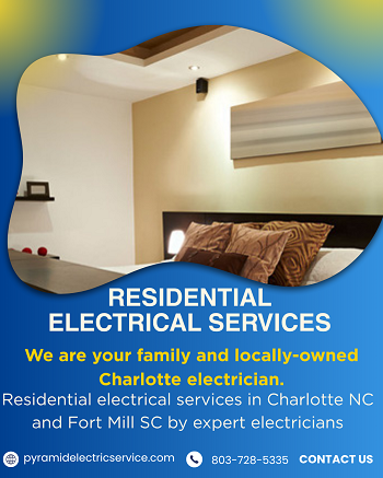 Residential Electrical Services In Charlotte: Safe InstallationsResidential electrical services in Charlotte NC ensure safe ceiling fan & chandelier installations by handling wiring & high ceilings. Pyramid Electric Services is your local Charlotte electrician. We are an experienced professional electrical contracting company serving the Charlotte area, Marvin, Weddington, Mathews, Wesley Chapel, and Waxhaw. We are licensed and insured in North Carolina and South Carolina.