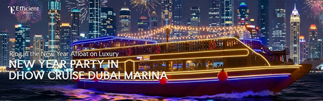 Midnight Cruise – Marina Lights And FireworksIf you want a sparkling start to the year — the new year party in Dubai Marina with Efficient Tourism offers a magical dhow cruise through Dubai Marina. The cruise sails past Marina Towers, Palm Jumeirah, JBR and more under the city lights — letting you soak in skyline views as water reflects the glow. Guests are treated to a sumptuous dinner buffet with vegetarian and non-vegetarian options - unlimited soft drinks, and snacks. The ship offers two decks — the air conditioned lower deck or open-air upper deck, so you can pick comfort or panoramic views based on your mood. As minutes tick towards midnight - the festive ambiance rises with live music and dance performances on board. The night culminates with a dazzling fireworks spectacle visible from the deck — an unforgettable way to count down to the new year.