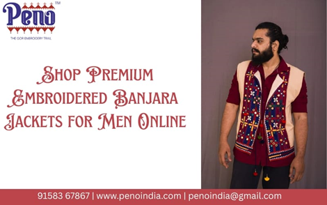 Shop Premium Embroidered Banjara Jackets For Men OnlineExplore our wide range of embroidered banjara (Gormati) jacket for men, featured as our best-selling items. With intricate Gor embroidery, shells and tassel detailing, this stylish jacket can enhance your banjara (Gormati) outfit look. You can shop these banjara (Gormati) jackets online from our website Penoindia.For more details contact us on +91 91583 67867 or penoindia@gmail.com