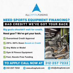 Sports Equipment FinancingSports Equipment Financing – CREDIT TROUBLES? YOU’RE APPROVED. Build your gym or facility today. •Approval with 25%–50% down (based on credit) •Fitness machines, turf, weights & more •Quick approvals, no games •Call/Text (312) 257-7232