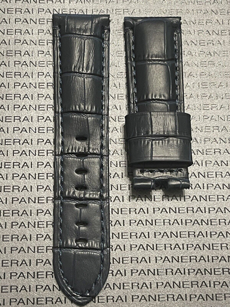 Buy Panerai Alligator Watch Strap For Luxury TimepiecesUpgrade your timepiece with this Panerai Alligator Watch Strap designed for collectors who value fit, finish, and long-term wear. Crafted from genuine alligator leather, this dark blue strap features a refined texture and precise stitching that pairs well with Panerai case designs. Built for a 24mm lug width and compatible with a deployant buckle, it delivers a secure and balanced feel on the wrist. This Premium Panerai alligator watch strap for men is suitable for daily use as well as formal occasions, offering durability without sacrificing comfort. The structured leather maintains its shape while developing a natural patina over time. Sourced from a trusted watch band & straps store, this OEM-style replacement is ideal for restoring or upgrading your Panerai watch with a clean, factory-correct look that complements luxury watch standards.