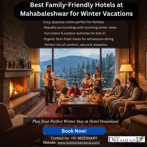 Winter Wonderland Stays: Top Hotels In MahabaleshwarExperience a cozy winter escape at Hotel Dreamland, one of the most preferred hotels in Mahabaleshwar. Enjoy misty mornings, comfortable rooms, lush gardens, and special winter cuisine made with fresh, organic ingredients. Ideal for families and couples seeking a peaceful and luxurious hill-station stay this winter. #HotelDreamland #HotelsInMahabaleshwar #WinterGetaway #MahabaleshwarWinter #HillStationStay #FamilyFriendlyResort #CoupleFriendlyHotel #WinterSpecial #OrganicFood