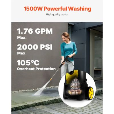 Vevor Electric Pressure WasherVEVOR Electric Pressure Washer, 2000 PSI, Max. 1.76 GPM Power Washer with 30 ft Hose, 5 Quick Connect Nozzles, Foam Cannon, Portable to Clean Patios, Cars, Fences, Driveways, ETL Listed