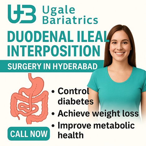 Duodenal Ileal Interposition Surgery In Hyderabad | Ugale BariatricsExperience transformative weight loss and diabetes control with Duodenal Ileal Interposition surgery at Ugale Bariatrics, Hyderabad’s premier weight loss center and clinic. This advanced, minimally invasive procedure repositions a segment of your small intestine to enhance insulin response while preserving natural stomach function, delivering 55–70% excess weight loss in 12–18 months and up to 80% diabetes remission. Benefit from expert surgeons, state-of-the-art 4K laparoscopic suites, ERAS protocols, and personalized support from our nutrition, fitness, and psychology teams. Flexible EMI plans, insurance assistance, and corporate packages ensure affordable, stress-free care. Book your free consultation today and take the first step toward lasting health and vitality.