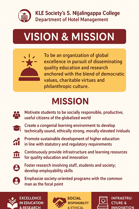 Vision And Mission - Top 10 Hotel Management Colleges In BangaloreVision and Missions - To be an organization of global excellence in pursuit of disseminating quality education and research anchored with the blend of democratic values, charitable virtues and philanthropic culture