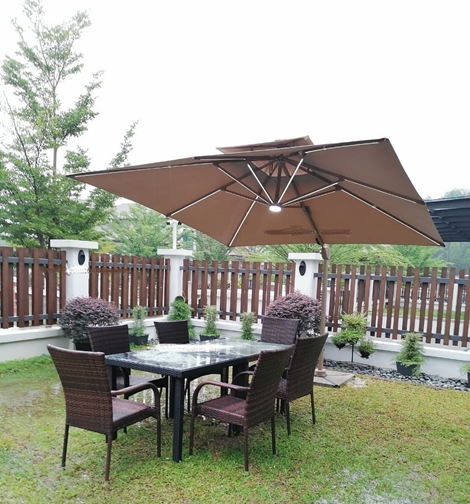 Patio UmbrellaPatio umbrella Decon has a heavy duty cantilever umbrella for all commercial and residential grade, supplies to most of the hospitality industry as well as individual home owners for past two decades, our wide selection of umbrella comes with many colors and designs, sizes and functions, some comes with cantilever mechanism can tit and turn 360 degree can adjust any position, some side pols and some comes with middle pole, along with base resin or four pieces of marble slabs to holds the umbrella.