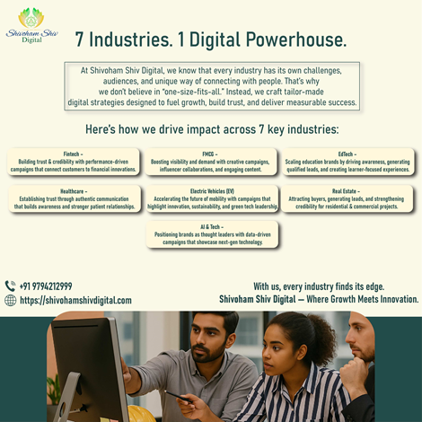 Top Digital Marketing Agency - Shivoham Shiv DigitalWe are Shivoham Shiv Digital – your partner in building powerful online growth. As a leading digital marketing agency, we craft data-driven, creative, and performance-focused strategies that help brands rise above the competition. ?? From FMCG and Real Estate to FinTech, EdTech, Healthcare, Electric Vehicles, and AI & Tech, we understand diverse industries and design tailored solutions to drive maximum impact. ?? Our expertise spans SEO, Social Media Marketing, Paid Ads, Content Strategy, and Influencer Collaborations — ensuring your brand not only gains visibility but also delivers measurable results. ?? With Shivoham Shiv Digital, your success story is just one strategy away. ?? +91 9794212999 ?? https://shivohamshivdigital.com/