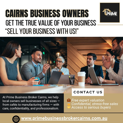 Online Business Broker Services In CairnsThinking about selling your business in Cairns? Prime Business Broker Cairns is here to help. The expert team offers confidential sales, expert valuations, and tailored brokerage services for a range of industries, including cafes, retail, franchises, industrial operations, and more. Whether it’s a café, retail shop, franchise, or industrial operation, Prime Business Broker Cairns understands the local market and works to maximize your business value. Visit Prime Business Broker Cairns today for a free quote.