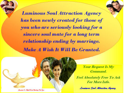 Sparking Romance And Passion With Luminous SoulFind Your Happily Ever After at Luminous Soul Attraction Agency! Greetings to all the Single Hearts around the World! Are you in search of true, sincere love that transcends distance and time? Dreaming of a long-term relationship that culminates in eternal bliss and a walk down the aisle? Look no further! Welcome to the enchanting realm of Luminous Soul Attraction Agency – where love stories come alive, and soulmates find each other amidst a sea of possibilities. Single, Divorced Ladies, Gentlemen, and Seekers of True Love: It's time to ignite the spark of connection and embark on a journey to find your Prince or Princess charming. Whether you seek a companion for life's adventures, a soulmate to share your dreams with, or a partner for a love that lasts a lifetime, our doors are open wide to welcome you with open arms. Key Information that Shines Bright: At Luminous Soul Attraction Agency, we value honesty, sincerity, and the power of authentic connections. Please note that our premium service comes with a deserving price tag. To begin your quest for love, kindly fill out our meticulously crafted online dating application forms with accurate details about yourself and your desired Princess or Prince charming. Once your application forms are completed, submit them via email (luminoussoulattractionagency@gmail.com) or through popular messaging platforms like WhatsApp, Viber, Signal, or Telegram. Prompt payment after form submission is essential to kickstart your journey towards finding true love and companionship. LINK WEBSITE https://avinashproductsandservice2019an.blogspot.com/2023/09/connect-with-woman-of-your-life-right.html