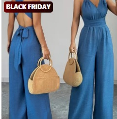 [Backless|Cross Waist Tie] Backless Cross Waist Tie JumpsuitUncover incredible deals and embrace a seamless shopping spree on Temu! Coupon price [$12.78] [Backless|Cross Waist Tie] Backless Cross Waist Tie Jumpsuit | Women's V-Neck Wide-Leg - Solid Blue Machine Washable Non-Stretch All-Season Casual to Formal Wear