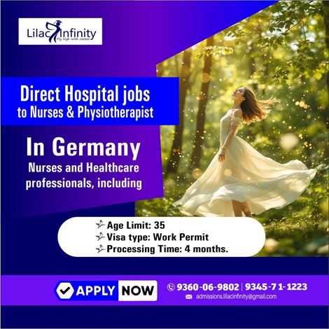 Lilac Infinity Opens Direct Recruitment For Nurses And Healthcare Professionals To Germany"Germany has emerged as a leading destination for international migrants. International nurses can now enter the German healthcare system, and Germany is actively recruiting nurses and healthcare professionals, including Physiotherapists. A key requirement for enrollment in this program is German language proficiency at the B1 level. This ensures that registered nurses can communicate effectively with patients, colleagues, and doctors, supporting safe patient care in the German healthcare system. Our specialized course equips qualified nurses, pharmacists, and physiotherapists to transition smoothly into German hospital placement. Through Lilac Infinity, expertly curated German placement programs provide real-time medical practice and modern equipment-based clinical practice. The smooth visa process and the availability of a work permit within 4 months make it easier to fly abroad and begin your migration journey. Eventually, healthcare professionals in Germany can secure permanent residency, allowing them to reunite with their family. Contact Lilac Infinity Kollam today, our young expert counsellors provide hassle-free guidance. ""Visit our website: https://www.lilacinfinity.com/ Instagram: https://www.instagram.com/lilac_infinity24/ Youtube: https://www.youtube.com/@LilacInfinity-j5c Linked In: https://www.linkedin.com/in/shamila-infinity-5a417935a/ Twitter: https://x.com/InfinitySh99983 contact us : 9360069802"""