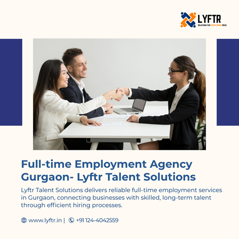 Full-Time Employment Agency Gurgaon- Lyftr Talent SolutionsLyftr Talent Solutions is a trusted full-time employment agency in Gurgaon, helping organizations build strong, long-term teams with ease. We specialize in sourcing, screening, and placing skilled professionals across industries through a streamlined hiring process. With a focus on quality, reliability, and cultural fit, Lyftr Talent Solutions bridges the gap between growing businesses and top-tier talent, ensuring sustainable workforce success and faster hiring outcomes. Visit https://lyftr.in/services/permanent-hiring/