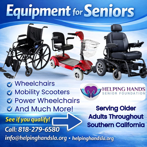 Wheelchairs, Walkers & Canes For Seniors: Medical Equipment SupportIf you or a loved one needs mobility support such as a wheelchair, walker, cane, or other medical equipment, our team may be able to help. We work with seniors and older adults with permanent disabilities to connect them with available resources through our DME Library. Our intake process is quick, and our goal is to find the most suitable equipment based on your needs. We may also assist you in learning about grants, navigating insurance options, community programs, and more. We currently have an array of donated DME such as wheelchairs, rollators, commodes, shower benches, grab bars, mattresses, and protective incontinence products—including adult diapers, pads, briefs, and more. Call us to learn more. Helping Hands Senior Foundation Call: 818-279-6580 Email: info@helpinghandsla.org Website: www.helpinghandsla.org Serving Los Angeles, Orange, Riverside, Ventura, San Bernardino, and San Diego Counties