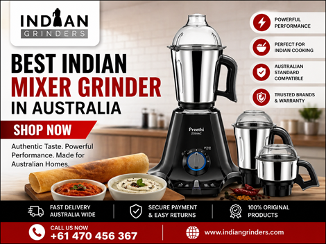 Best Indian Mixer Grinder In Australia – Shop NowUpgrade your kitchen with high-quality appliances from Indian Grinders, your trusted destination for Indian mixer grinder Australia and authentic cookware solutions. Whether you're preparing smooth chutneys, grinding fresh spices, or making perfect dosa and idli batter, our powerful mixer and wet grinders are designed to deliver consistent results every time. Many standard appliances fail to handle Indian cooking needs, but our carefully selected range ensures durability, strong motor performance, and compatibility with Australian standards. Featuring reliable brands and user-friendly designs, we help bring back the authentic taste of home-cooked meals. Enjoy peace of mind with warranty-backed products, secure shopping, fast delivery, and easy returns. Don’t settle for less—buy Indian kitchen appliances online that truly perform. Call +61 470 456 367 today and let Indian Grinders help you choose the perfect appliance for your kitchen!