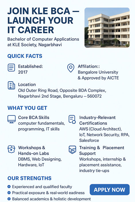 Top Bca College & Centre Of Excellence In Bangalore – Kle BcaExplore the Centre of Excellence at one of the best private BCA colleges in Bangalore. Apply now for BCA admissions and secure a placement-focused BCA education in Bangalore.