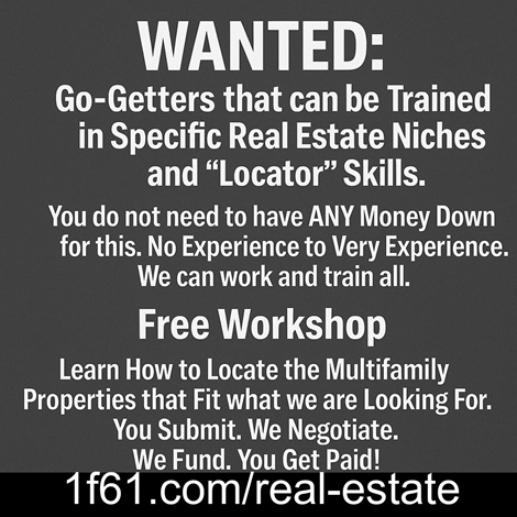 Mentorship + Tools = Multifamily SuccessIf you’ve been thinking about real estate but feel overwhelmed, this is your invitation. We provide mentorship, deal evaluation tools, market insights, and hands-on support to help you build real multifamily investment skills. Learn how deals are found, funded, and managed — and how people just like you build long-term income through apartments. No background necessary. Perfect for anyone wanting a guided path into multifamily investing. Spots are limited, so reply today for full program details.
