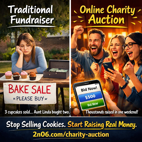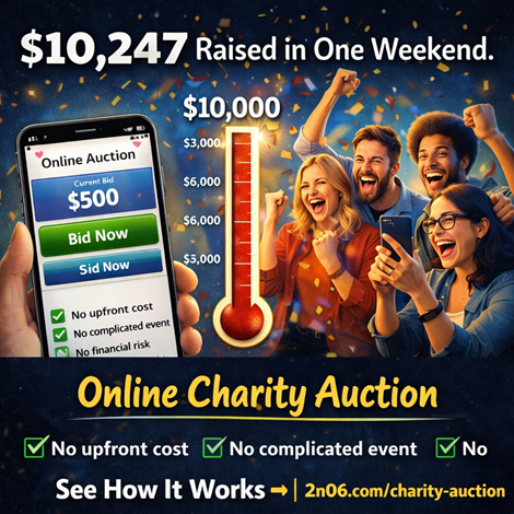 Your Bake Sale Just Got Fired. Meet Its ReplacementMost nonprofits work incredibly hard to raise money… but the truth is many traditional fundraisers are exhausting, risky, and raise far less than they should. Bake sales. Raffles. Gala dinners. Endless donation requests. There’s a better way. Thousands of organizations are now raising thousands (sometimes tens of thousands) of dollars in just a few days using a simple Online Charity Auction System — and the best part is: ? No upfront cost ? No financial risk ? No complicated event planning ? Mobile-friendly bidding from anywhere Your supporters simply register, bid on items they want, and compete with each other while supporting your cause. It’s fun. It’s engaging. And it works. Schools, churches, animal rescues, veterans groups, youth sports teams, and community organizations across the country are using this exact system to fund their missions. Many groups raise $5,000 – $20,000+ in a single auction weekend. You’ll also get: • Your own charity auction website • A personal fundraising consultant • Access to 100+ auction items (vacations, experiences, sports memorabilia & more) • A proven promotion strategy with 100+ marketing ideas • Funds delivered within 10 days after your auction closes Even small organizations with limited staff are seeing incredible results. If your nonprofit has supporters who care about your mission, an auction can turn that passion into real funding very quickly. Learn how it works here: https://2n06.com/charity-auction Reserve a FREE consultation and see if an auction could work for your organization. No pressure. No risk. Just a smarter way to fund your mission.